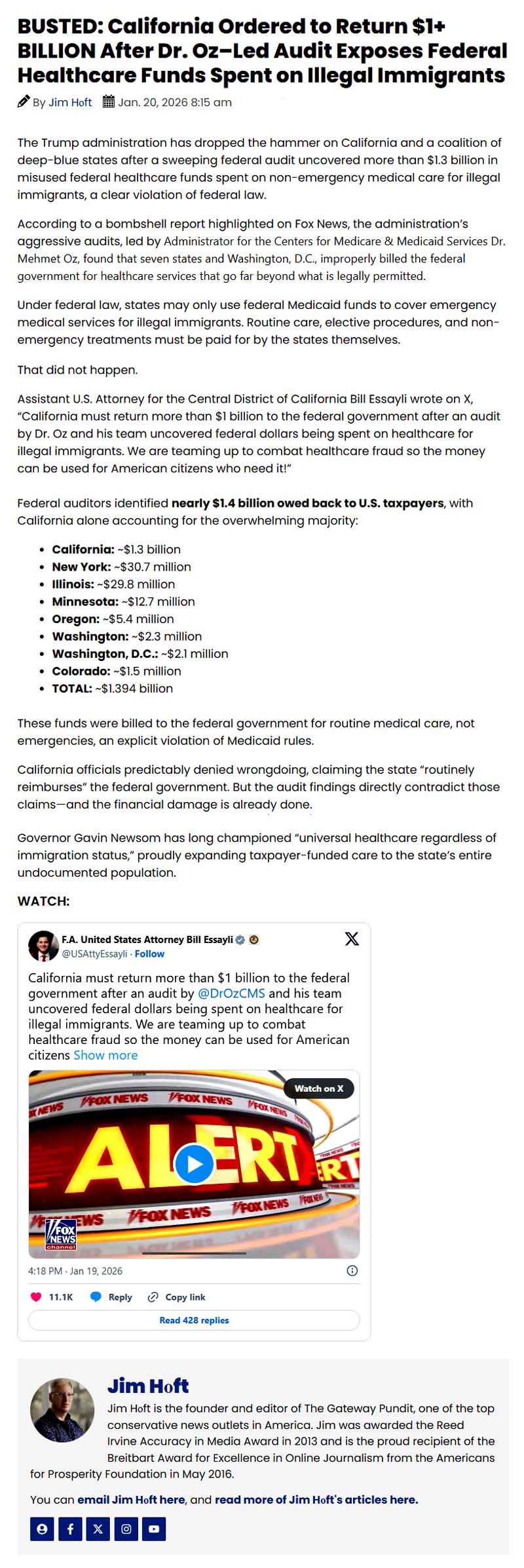 Article written by Jim Holt, January 20. 2026, GatewayPundit