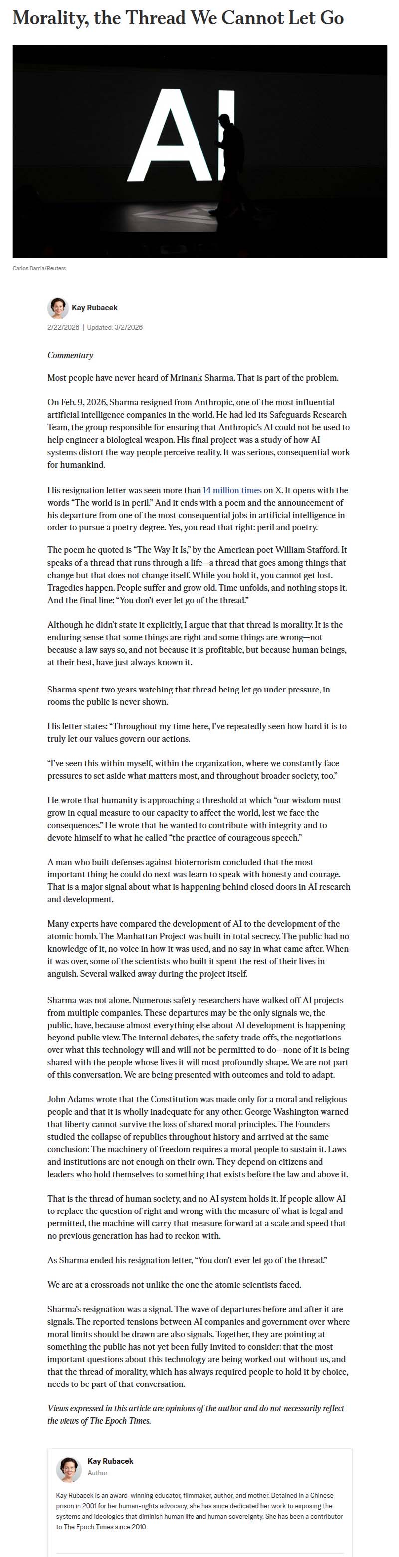 Article written by Kay Rubacek, March 2, 2026, EpochTimes